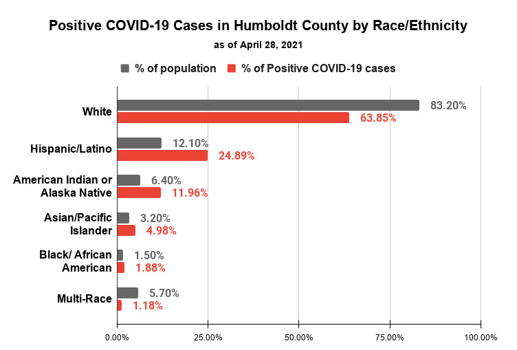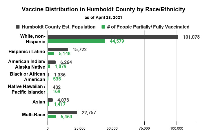 - Humboldt county is currently in the orange or moderate tier, this means that some indoor businesses are open with modifications. Only 41% of Humboldt’s population has had at least one dose of a COVID-19 vaccine and only 24% have been fully vaccinated.