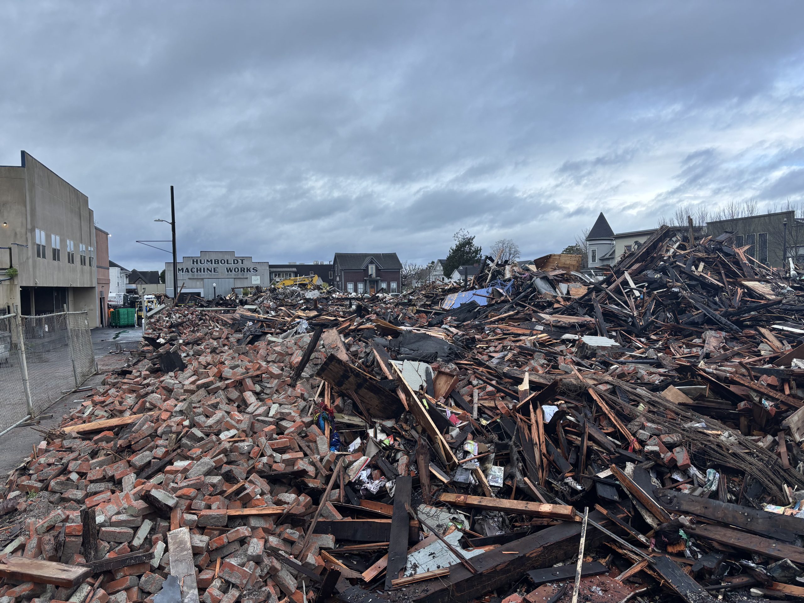 Although the insurance investigation is  ongoing, the Arcata Fire Department has  urged the city to clean up any hazardous  debris from the site.